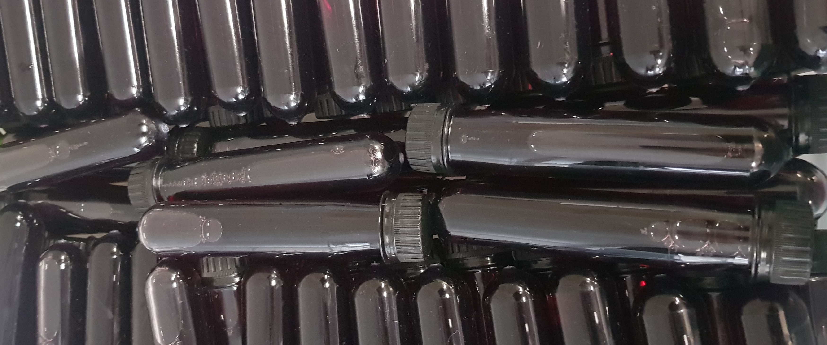 Our 45ml Vinitubes are made of virgin PET. They are sterilized and rinsed through a reverse osmosis washer system to make sure no residue or water-soluble particles could contaminate your wine.